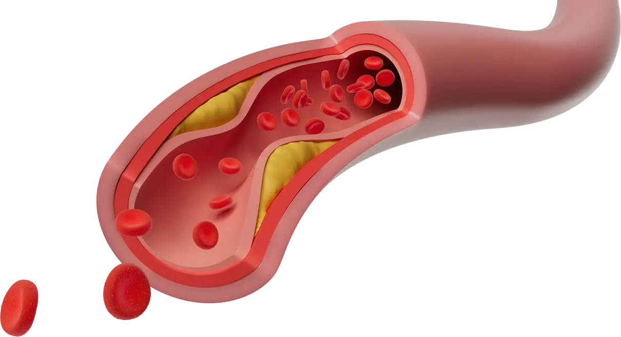 The initial trigger for the development of hardening of the arteries is probably damage to the endothelial cell layer lining the artery.  This damage may be caused by smoking, viruses, chemicals and drugs.  There may be many chemical causes of damage to the endothelial cells in our environment that have not been identified.  In the earliest stages, yellow fatty streaks develop in the blood vessels caused by the deposition of fats in the wall of the artery.  They are yellow due to the deposited cholesterol.  Fatty streaks will not cause any symptoms, but are the earliest sign of arterial disease and can progress to the development of atherosclerotic plaques.  Plaques are basically thickening of the innermost layer of the arterial wall. As the plaques become larger they impede blood flow through the artery.