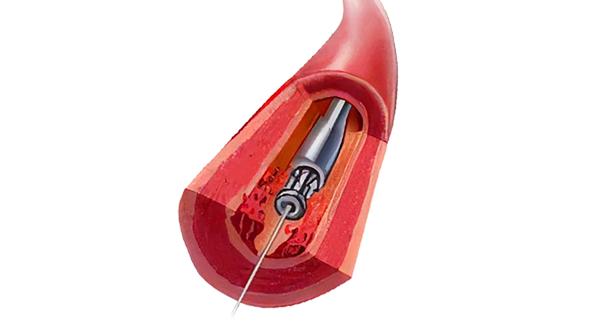 When used in patients with extensive deep venous thrombosis a catheter is placed into the deep vein and the clot treated directly. This usually acts rapidly and a combination of thrombolysis and mechanical disruption of the blood clot can be used.